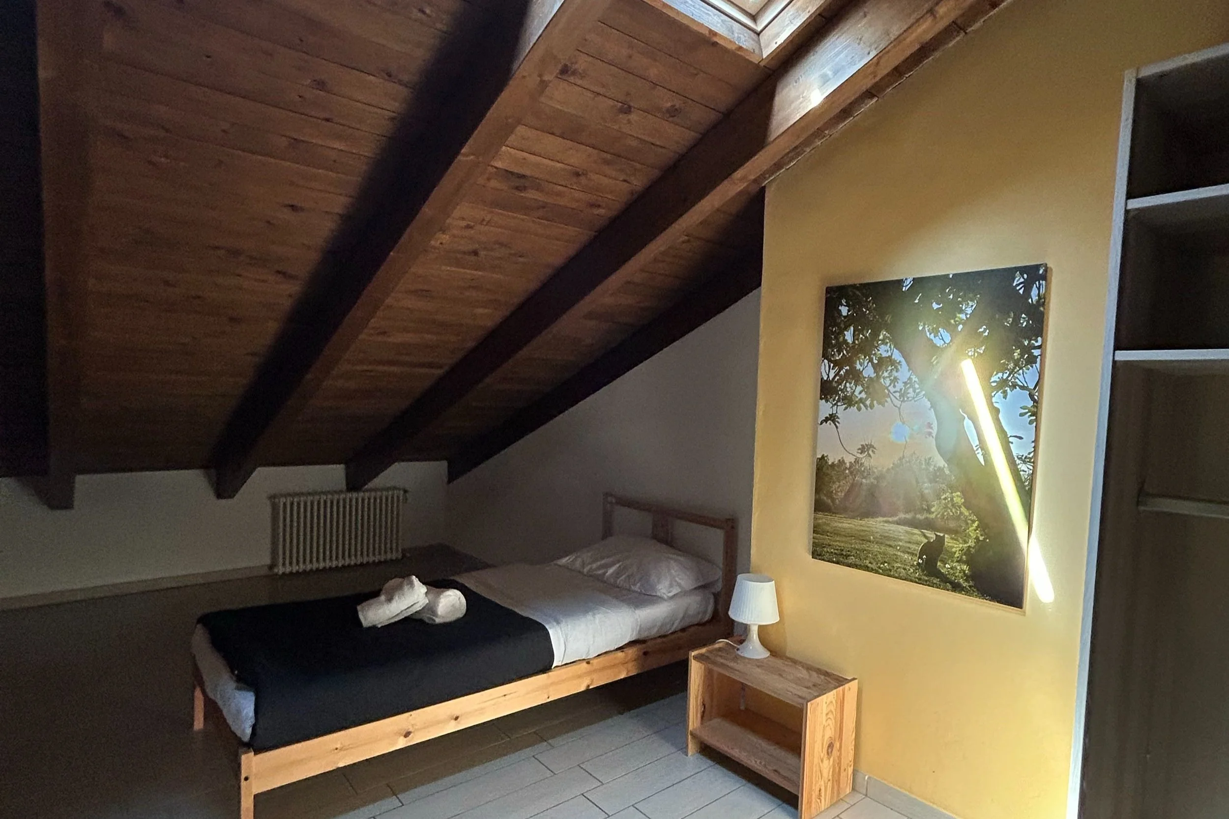 Cavallo Pazzo - camera mix assegnata a entrambi i sessi senza distinzione (2 letti a castello: matrimoniale sotto e singolo sopra + 1 letto castello singolo sia sopra che sotto) per 6 posti letto singoli – oppure 4 singoli e 4 in condivisione per 8 posti letto totali.